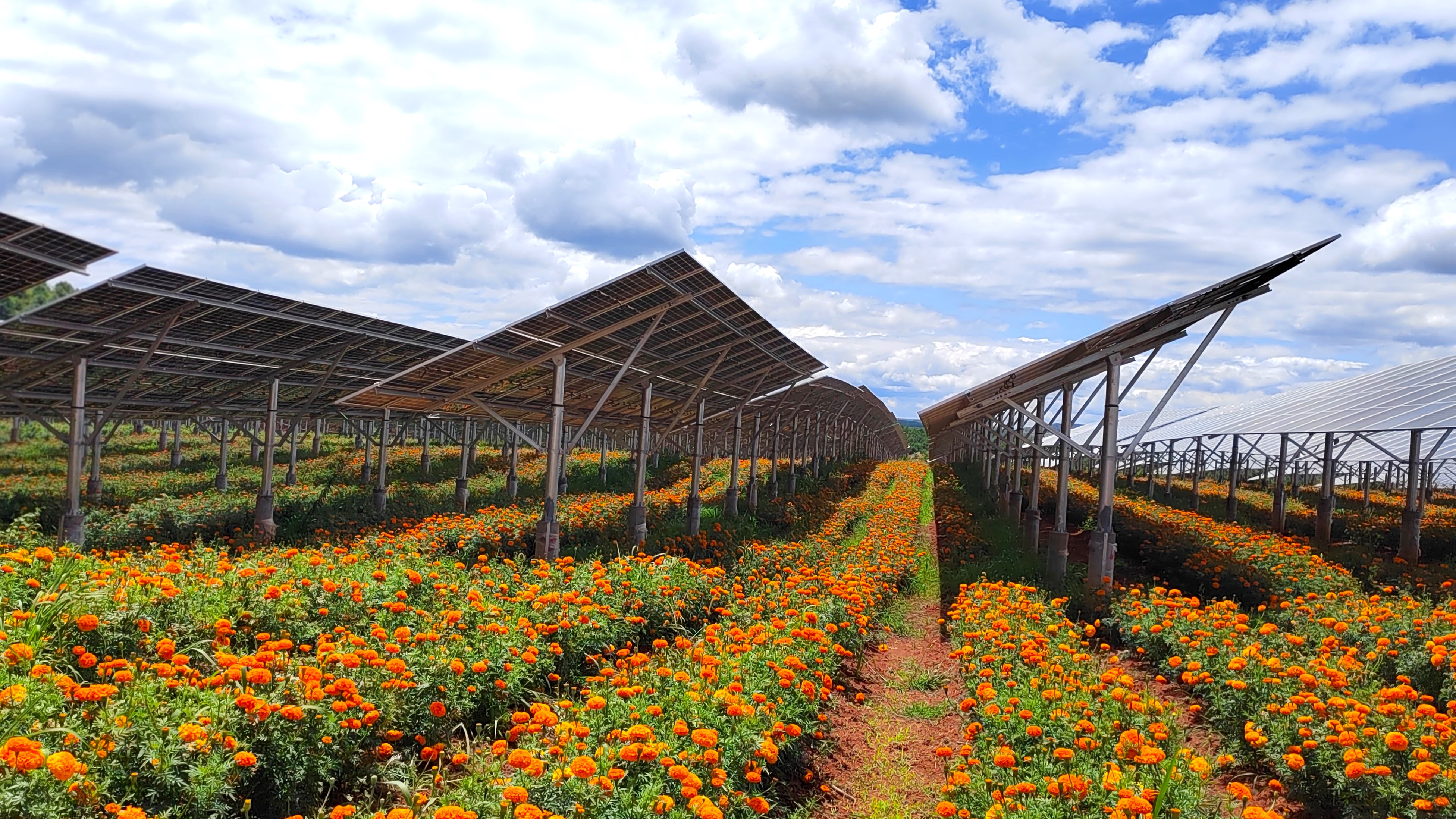 走近云南省曲靖市沾益區(qū)劉家莊的一處荒坡,排列整齊的光伏板與競相綻放的萬壽菊在陽光的照耀下格外璀璨奪目,當(dāng)?shù)匾揽俊肮夥?特色產(chǎn)業(yè)”的方式,走出一條經(jīng)濟(jì)發(fā)展與生態(tài)保護(hù)的“雙贏之路”。